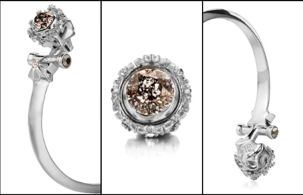 Channel bold elegance with this cracked skull cuff bracelet, crafted in 24K gold or white gold plating and accented with dark Swarovski-inspired crystals. A striking blend of gothic elegance and modern design, perfect for adding depth and distinction to your jewelry collection.