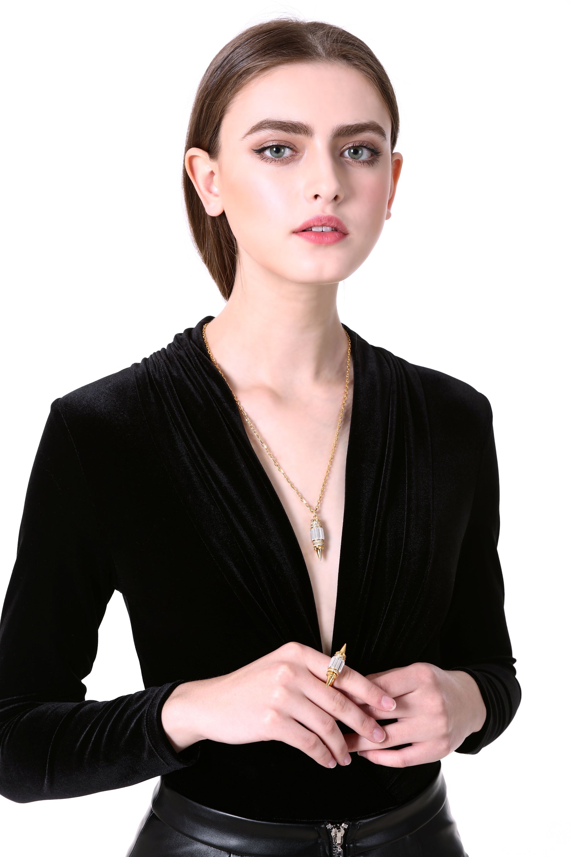 Bold meets refined in this 24K gold-plated punk ring, featuring studded detailing and Swarovski crystals. A perfect fusion of edgy attitude and understated luxury—made to stand out in any stack.