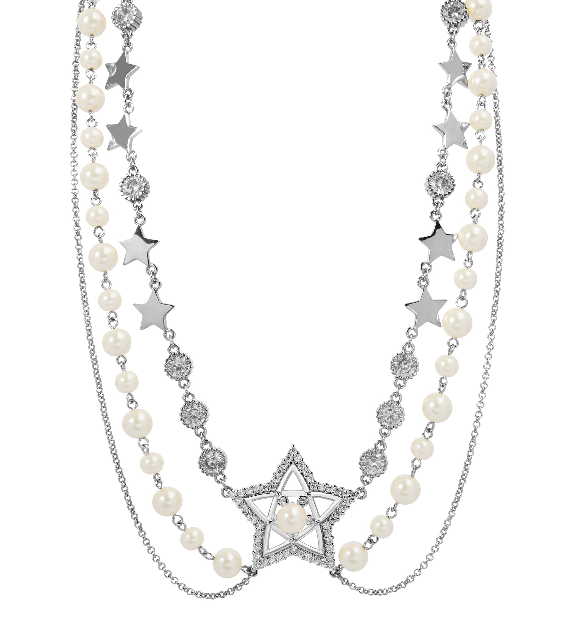 Starry Skies Pearl Necklace –Handcrafted Glamour with Crystals