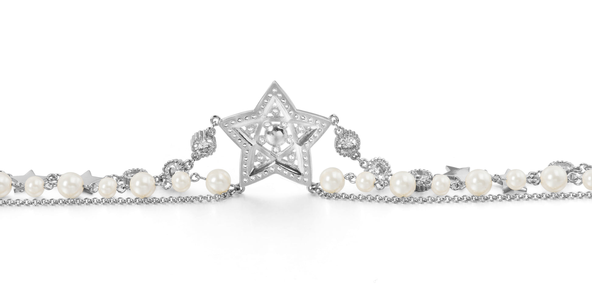Channel timeless elegance with this handcrafted 24K gold-plated pearl necklace, featuring luminous glass pearls, Swarovski crystals, and a custom star pendant. A vintage-inspired statement piece designed to dazzle, day or night.