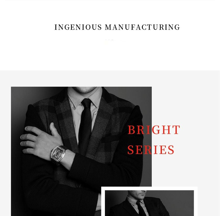 The fluid curves and sleek tonneau shape create a refined yet contemporary look. The double-sided skeleton dial reveals layered mechanics and depth, perfectly paired with a sparkling crystal-set bezel. This design exudes a bold presence while embodying TIELBO's fusion of aesthetics and expert watchmaking.